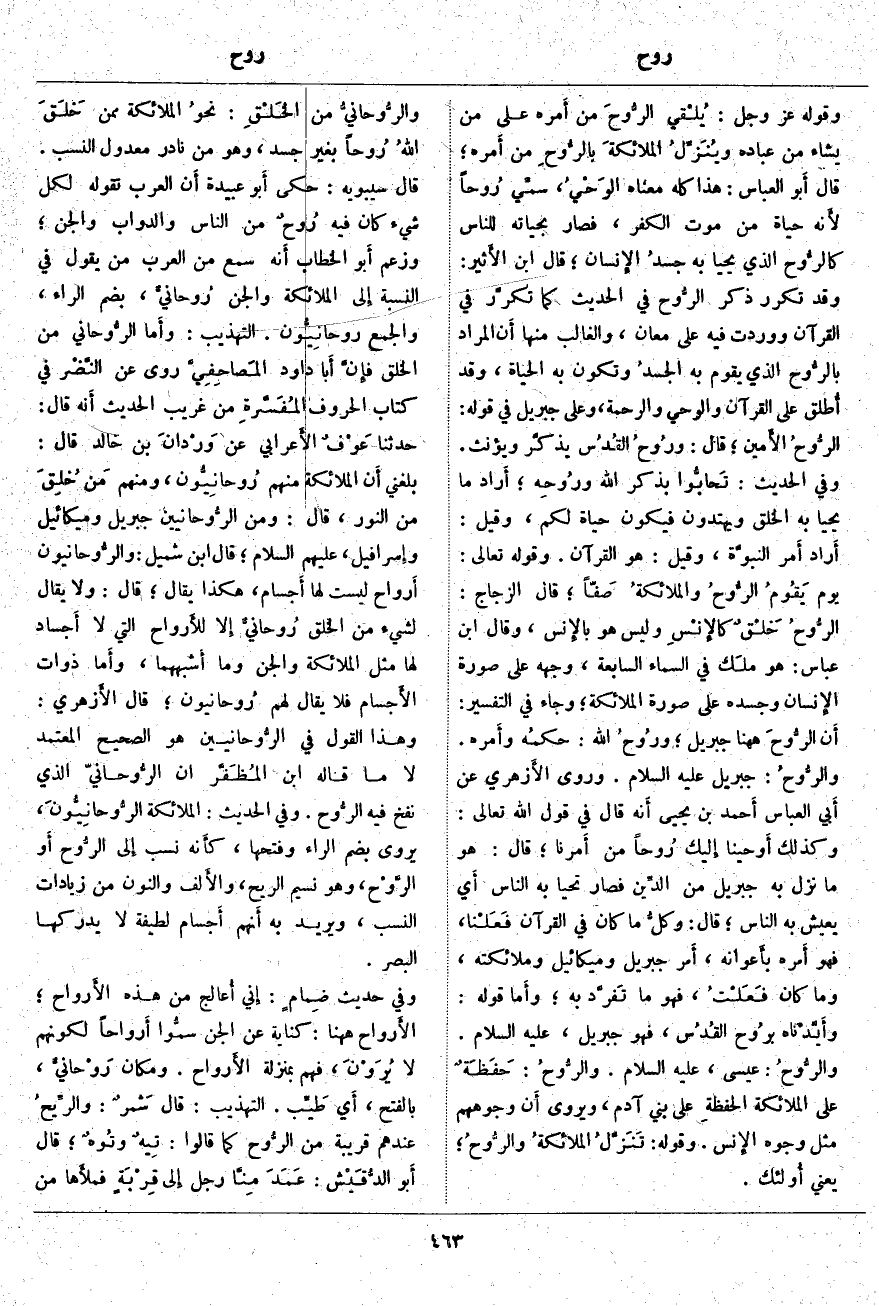 ؛ قَالَ أَبو الْعَبَّاسِ: هَذَا كُلُّهُ مَعْنَاهُ الوَحْيُ، سمِّي رُوحاً لأَنه حَيَاةٌ مِنْ مَوْتِ الْكُفْرِ، فَصَارَ بِحَيَاتِهِ لِلنَّاسِ كالرُّوح الَّذِي يَحْيَا بِهِ جسدُ الإِنسان؛ قَالَ ابْنُ الأَثير: وَقَدْ تَكَرَّرَ ذِكْرُ الرُّوح فِي الْحَدِيثِ كَمَا تكرَّر فِي الْقُرْآنِ وَوَرَدَتْ فِيهِ عَلَى مَعَانٍ، وَالْغَالِبُ مِنْهَا أَن الْمُرَادَ بالرُّوح الَّذِي يَقُومُ بِهِ الجسدُ وَتَكُونُ بِهِ الْحَيَاةُ، وَقَدْ أُطلق عَلَى الْقُرْآنِ وَالْوَحْيِ وَالرَّحْمَةِ، وَعَلَى جِبْرِيلَ فِي قَوْلِهِ: الرُّوحُ الْأَمِينُ