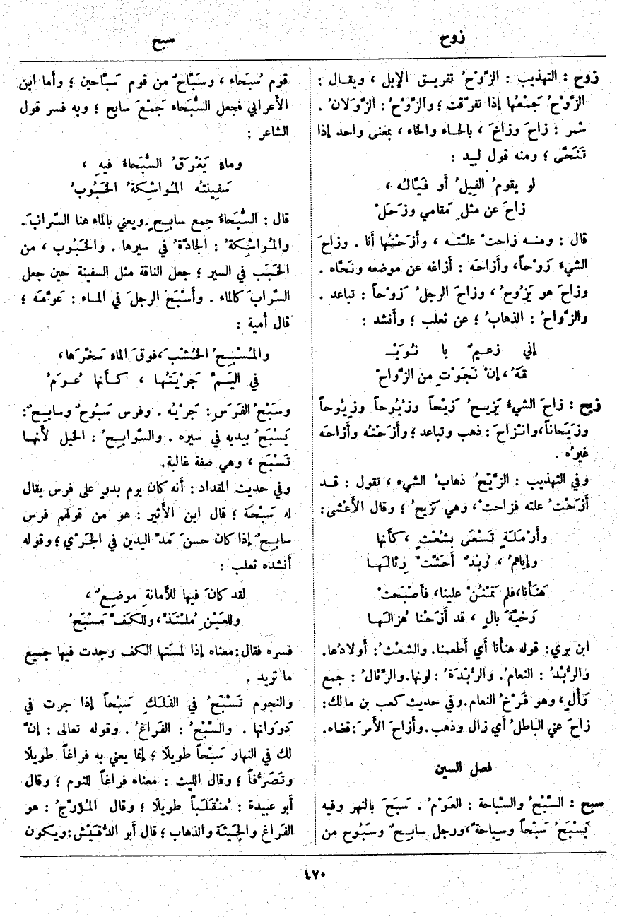 زوح: التَّهْذِيبِ: الزَّوْحُ تَفْرِيقُ الإِبل، وَيُقَالُ: الزَّوْحُ جَمْعُها إِذا تَفَرَّقَتْ؛ والزَّوْحُ: الزَّوَلانُ. شَمِرٌ. زاحَ وزاخَ، بِالْحَاءِ وَالْخَاءِ، بِمَعْنًى وَاحِدٍ إِذا تَنَحَّى؛ وَمِنْهُ قَوْلُ لَبِيدٍ: