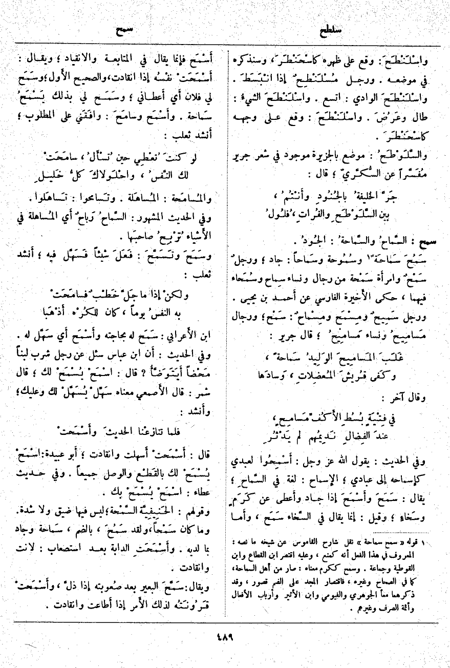 (1). قوله [سمح سماحة] نقل شارح القاموس عن شيخه ما نصه: المعروف في هذا الفعل أنه كمنع، وعليه اقتصر ابن القطاع وابن القوطية وجماعة. وسمح ككرم معناه: صار من أهل السماحة، كما في الصحاح وغيره، فاقتصار المجد على الضم قصور، وقد ذكرهما معاً الجوهري والفيومي وابن الأَثير وأرباب الأَفعال وأئمة الصرف وغيرهم.