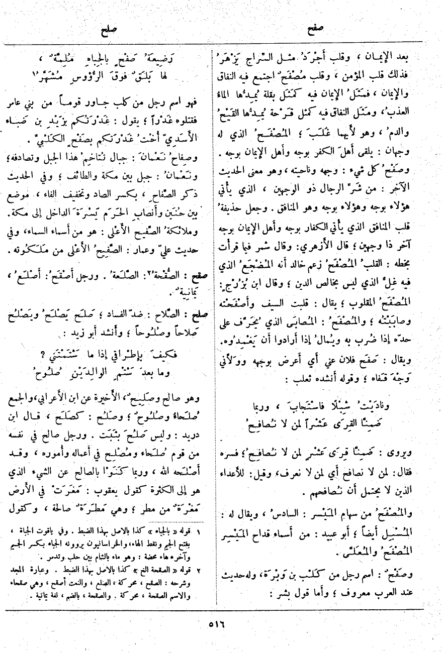 فَهُوَ اسْمُ رَجُلٍ مِنْ كَلْبٍ جَاوَرَ قَوْمًا مِنْ بَنِي عَامِرٍ فَقَتَلُوهُ غَدْراً؛ يَقُولُ: غَدْرَتُكم بزَيْدِ بْنِ ضَباء الأَسَدِيّ أُخْتُ غَدْرَتكم بصَفْحٍ الكَلْبيِّ. وصِفاحُ نَعْمانَ: جِبَالٌ تُتاخِمُ هَذَا الْجَبَلَ وَتُصَادِفُهُ؛ ونَعْمانُ: جَبَلٌ بَيْنَ مَكَّةَ وَالطَّائِفِ؛ وَفِي الْحَدِيثِ ذِكْرُ الصِّفاحِ، بِكَسْرِ الصَّادِ وَتَخْفِيفِ الْفَاءِ، مَوْضِعٌ بَيْنَ حُنَين وأَنصابِ الحَرَم يَسْرَةَ الدَّاخِلِ إِلى مَكَّةَ. وملائكةُ الصَّفيح الأَعْلى: هُوَ مِنْ أَسماء السَّمَاءِ، وَفِي حَدِيثِ