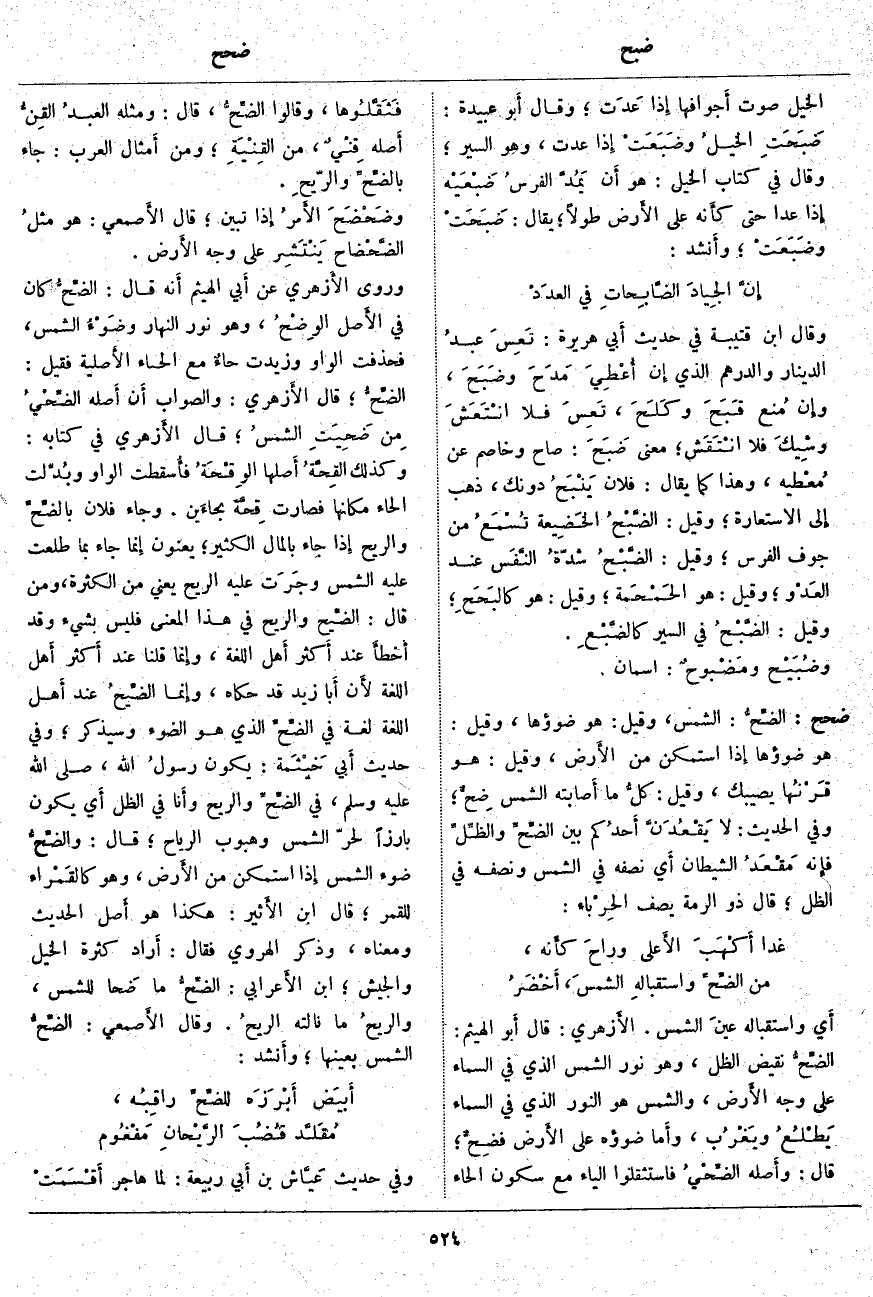 ضحح: الضِّحُّ: الشَّمْسُ، وَقِيلَ: هُوَ ضَوْؤُهَا، وَقِيلَ: هُوَ ضَوْؤُهَا إِذا اسْتَمْكَنَ مِنَ الأَرض، وَقِيلَ: هُوَ قَرْنُها يُصِيبُكَ، وَقِيلَ: كلُّ مَا أَصابته الشَّمْسُ ضِحٌّ؛ وَفِي الْحَدِيثِ:
