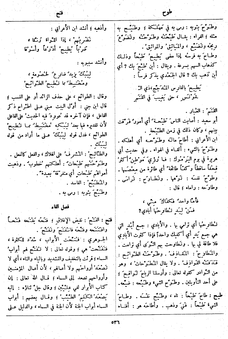 وَقَالَ: الطَّوَائِحُ، عَلَى حَذْفِ الزَّائِدِ أَو عَلَى النَّسَبِ؛ قَالَ ابْنُ جِنِّي: أَوَّل الْبَيْتِ مَبْنِيٌّ عَلَى اطِّراح ذِكْرِ الْفَاعِلِ، فإِن آخِرَهُ قَدْ عُووِدَ فِيهِ الحديثُ عَلَى الْفَاعِلِ لأَن تَقْدِيرَهُ فِيمَا بعدُ ليَبْكِه مُخْتَبِطٌ مِمَّا تُطِيحُ الطَّوَائِحُ، فَدَلَّ قَوْلُهُ لِيُبْكَ عَلَى مَا أَراد مِنْ قَوْلِهِ لِيَبْكِ. والطَّائِحُ: المُشرِفُ عَلَى الْهَلَاكِ، وَالْفِعْلُ كَالْفِعْلِ. وطَوَّحَتْهم طَيْحاتٌ: أَهلكتهم خُطوبٌ. وَذَهَبَتْ أَموالُهم طَيْحاتٍ أَي مُتَفَرِّقَةً بَعِيدَةً. والمُطَيَّحُ: الْفَاسِدُ. وطَيَّحَ بِثَوْبِهِ: رمى به.