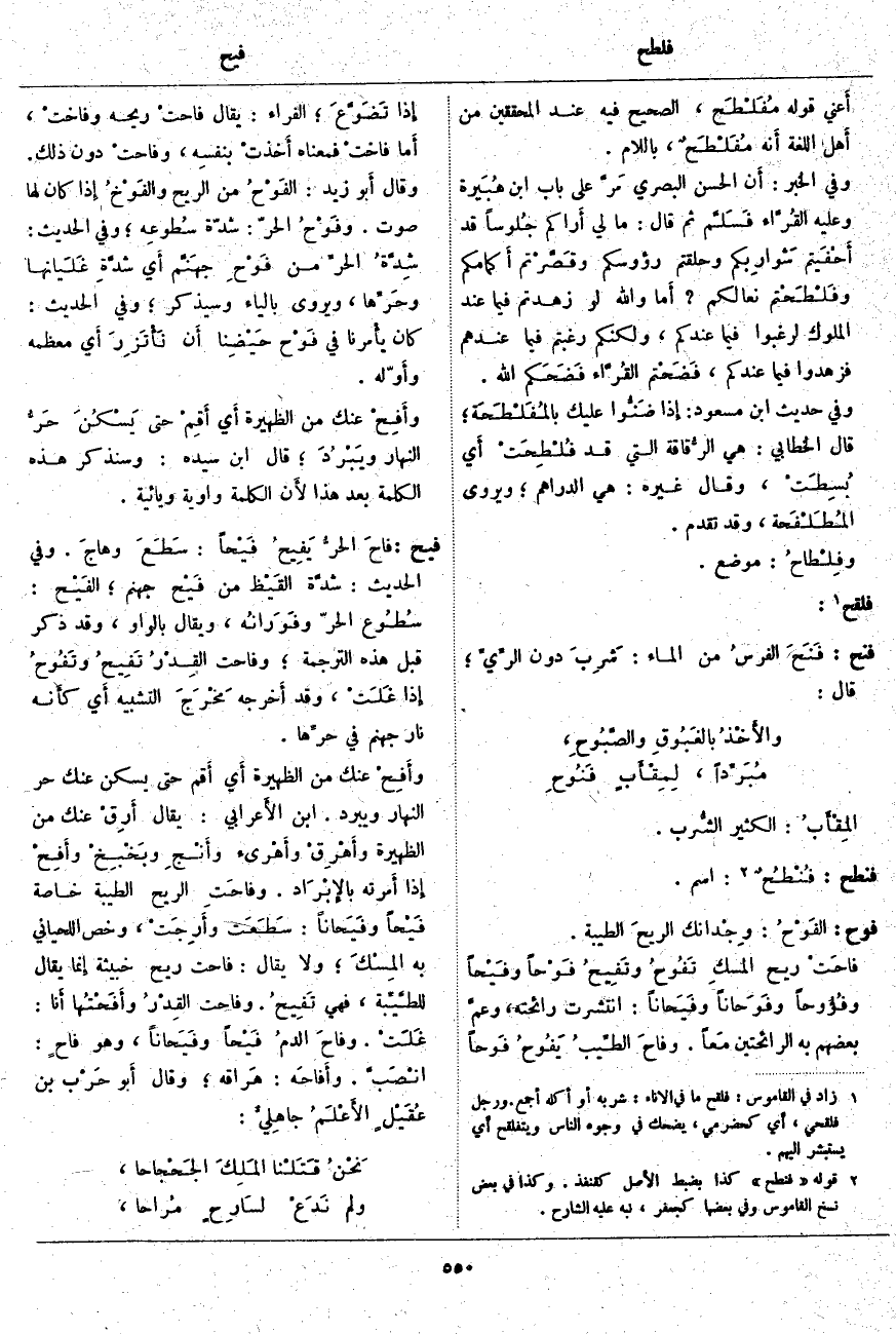 (2). زاد في القاموس: فلقح مَا فِي الإِناء: شَرِبَهُ أَو أَكله أجمع. ورجل فلقحي، أي كحضرمي، يضحك في وجوه الناس ويتفلقح أي يستبشر إليهم. (3). قوله [فنطح] كذا بضبط الأَصل كقنفذ. وكذا في بعض نسخ القاموس وفي بعضها كجعفر، نبه عليه الشارح.