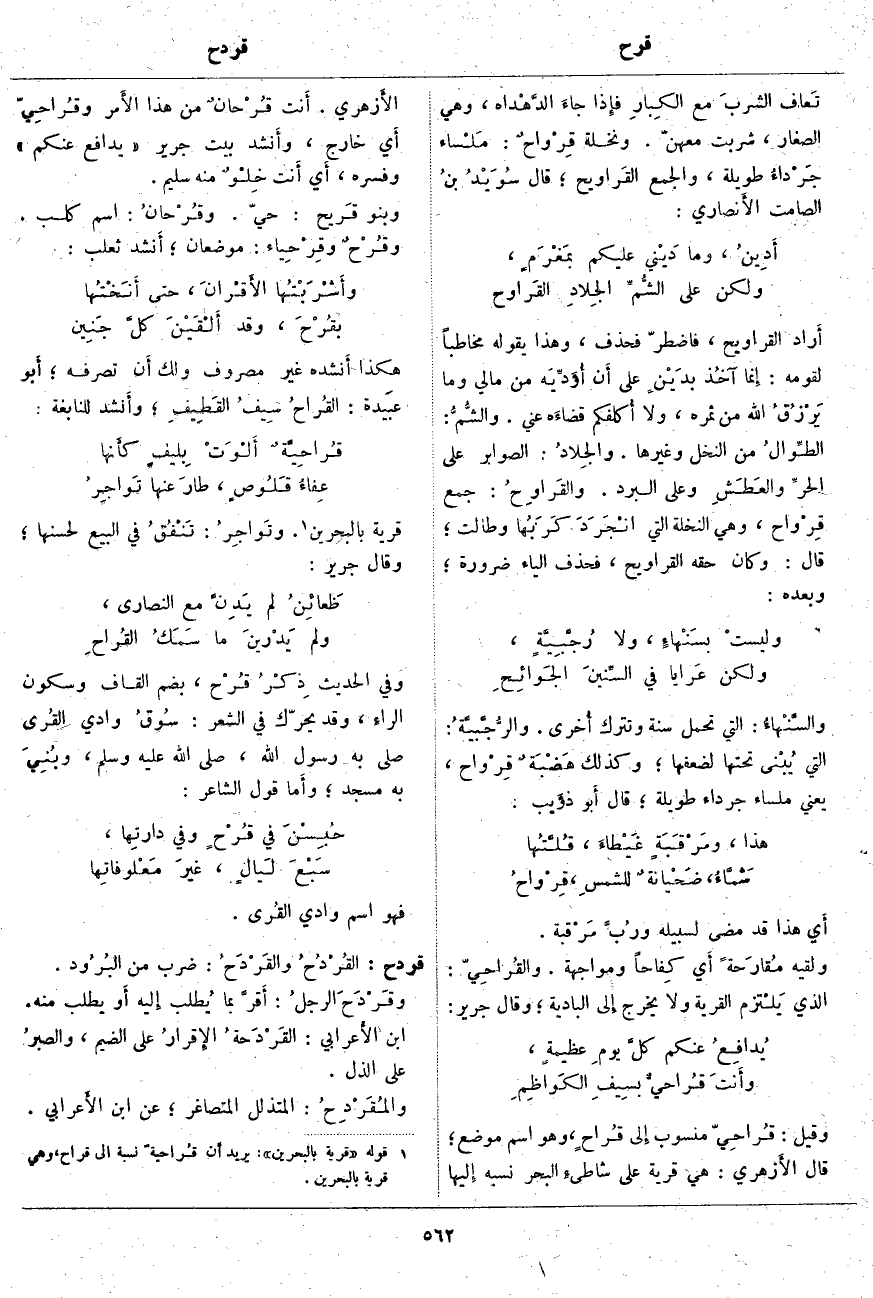 (1). قوله [قرية بالبحرين]: يريد أَن قُراحيةً نسبة إِلى قراح، وهي قرية بالبحرين.