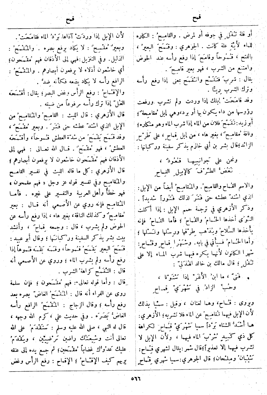 فَهُوَ خطأٌ وأَهل الْعَرَبِيَّةِ وَالتَّفْسِيرِ عَلَى غَيْرِهِ. فأَما المُقامِح فإِنه رُوِيَ عَنِ الأَصمعي أَنه قَالَ: بَعِيرٌ مُقامِحٌ وَكَذَلِكَ النَّاقَةُ، بِغَيْرِ هَاءٍ، إِذا رَفَعَ رأْسه عَنِ الْحَوْضِ وَلَمْ يَشْرَبْ، قَالَ: وَجَمْعُهُ قِماحٌ، وأَنشد بَيْتَ بِشْرٍ يَذْكُرُ السَّفِينَةَ ورُكبانَها؛ وَقَالَ أَبو عُبَيْدٍ: قَمَحَ الْبَعِيرُ يَقْمَحُ قُموحاً، وقَمَه يَقْمَه قُموهاً إِذا رَفَعَ رأْسه وَلَمْ يَشْرَبِ الْمَاءَ؛ وَرُوِيَ عَنِ الأَصمعي أَنه قَالَ: التَّقَمُّح كراهةُ الشُّرْبِ. قَالَ: وأَما قَوْلُهُ تَعَالَى: فَهُمْ مُقْمَحُونَ