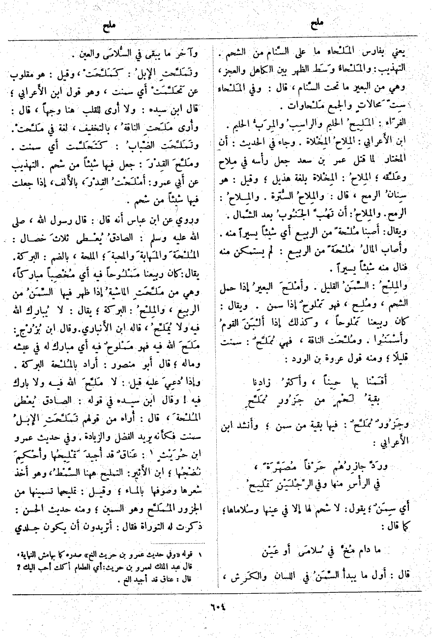 ، قَالَ: أُراه مِنْ قَوْلِهِمْ تَمَلَّحَتِ الإِبلُ سَمِنَتْ فكأَنه يُرِيدُ الْفَضْلَ وَالزِّيَادَةَ. وَفِي حَدِيثِ