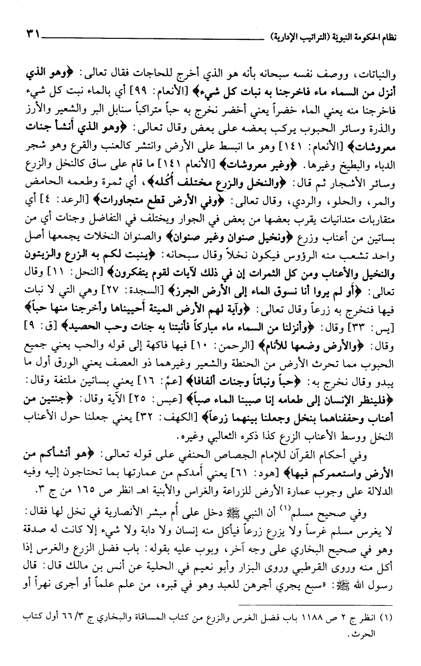 وفي أحكام القرآن للإمام الجصاص الحنفي على قوله تعالى: هُوَ أَنْشَأَكُمْ مِنَ الْأَرْضِ وَاسْتَعْمَرَكُمْ فِيها [هود: 61] يعني أمدكم من عمارتها بما تحتاجون إليه وفيه الدلالة على وجوب عمارة الأرض للزراعة والغراس والأبنية اهـ انظر ص 165 من ج 3.