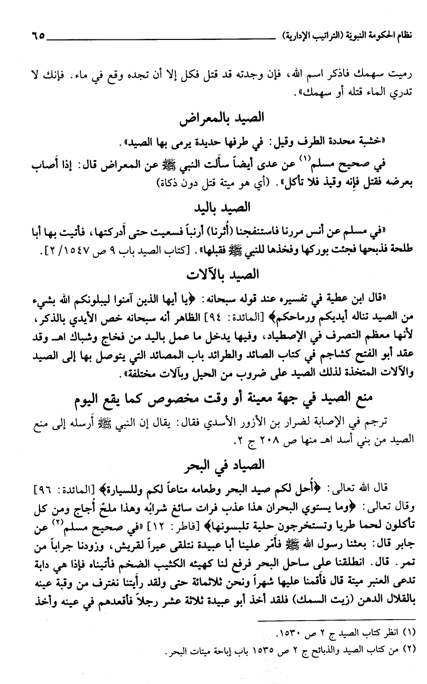 (1) انظر كتاب الصيد ج 2 ص 1530.