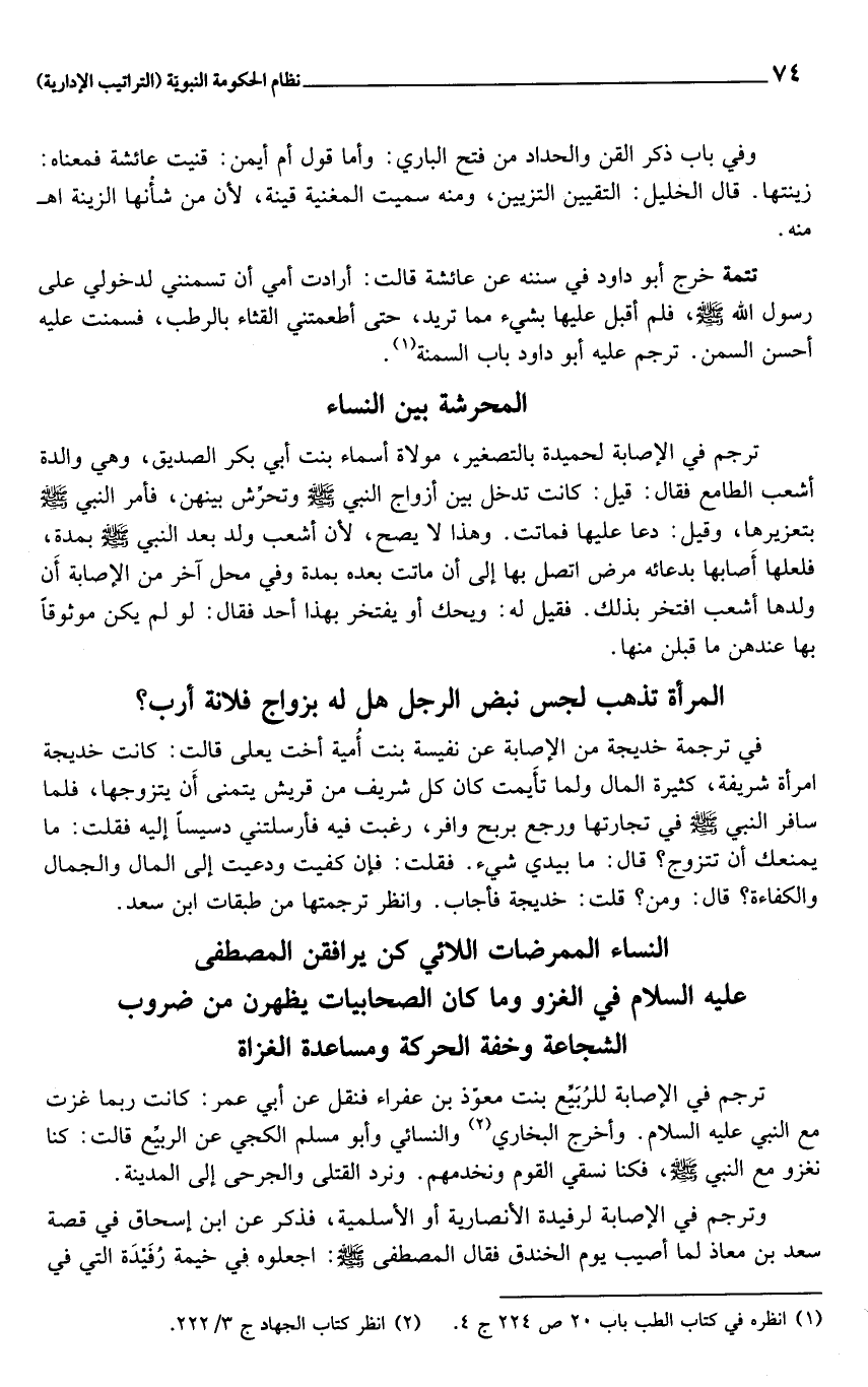 النساء الممرضات اللائي كن يرافقن المصطفى عليه السلام في الغزو وما كان الصحابيات يظهرن من ضروب الشجاعة وخفة الحركة ومساعدة الغزاة