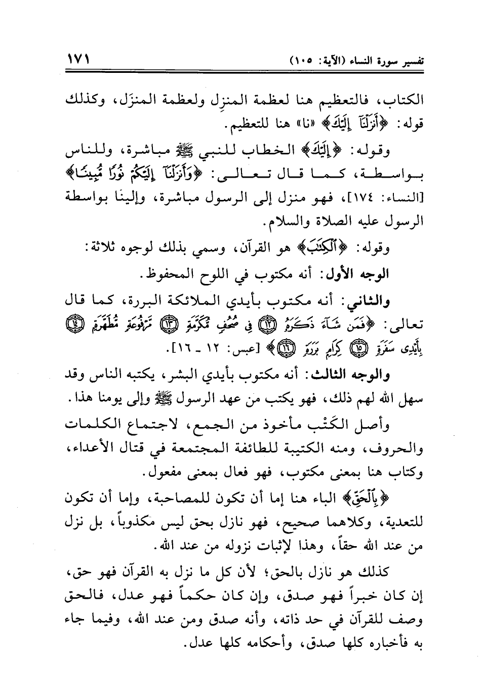 وقوله: {الْكِتَابَ} هو القرآن، وسمي بذلك لوجوه ثلاثة: