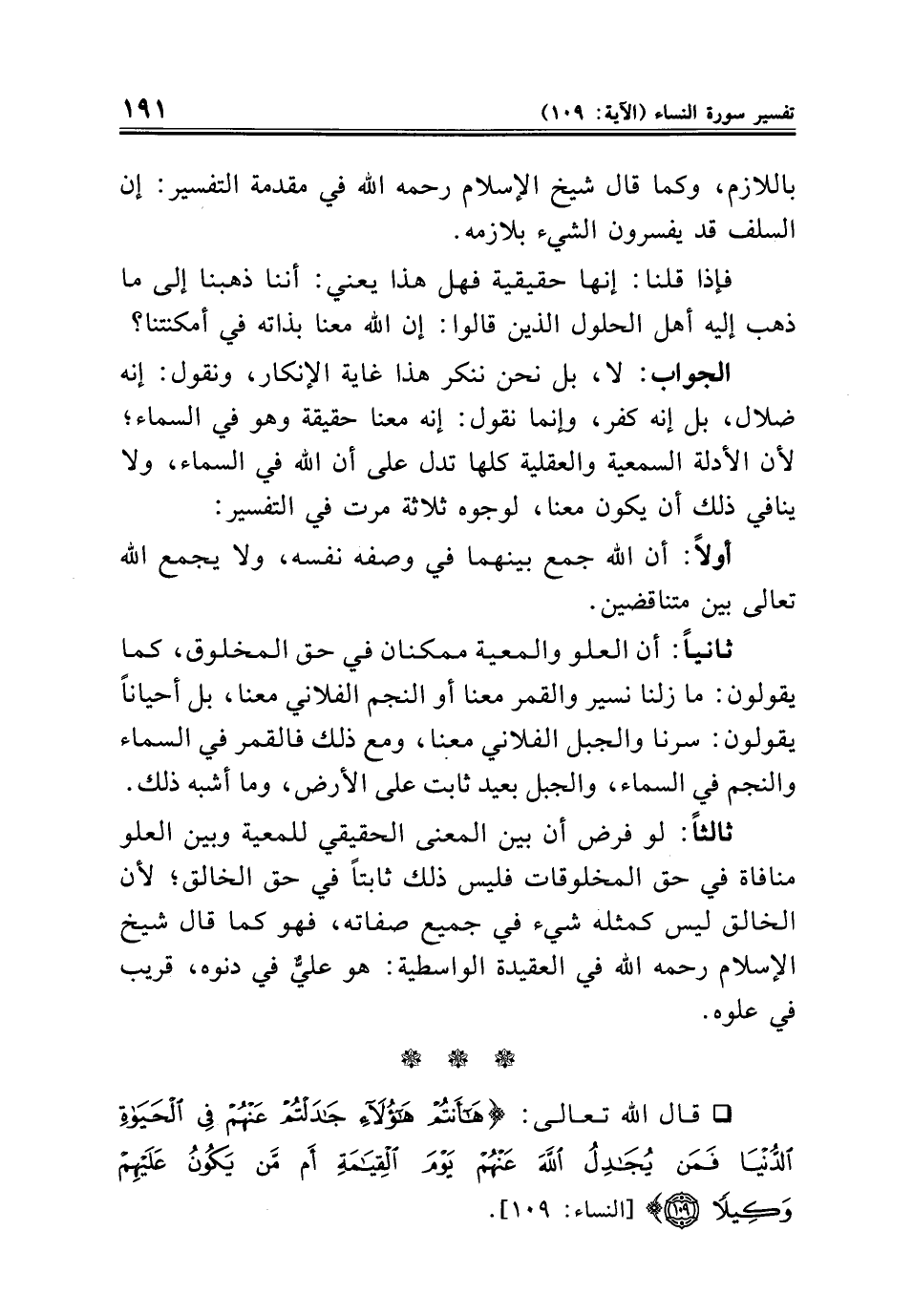 فإذا قلنا: إنها حقيقية فهل هذا يعني: أننا ذهبنا إلى ما ذهب إليه أهل الحلول الذين قالوا: إن الله معنا بذاته في أمكنتنا؟