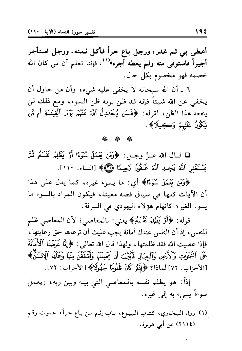 (¬١) رواه البخاري، كتاب البيوع، باب إثم من باع حرًا، حديث رقم (٢١١٤) عن أبي هريرة.