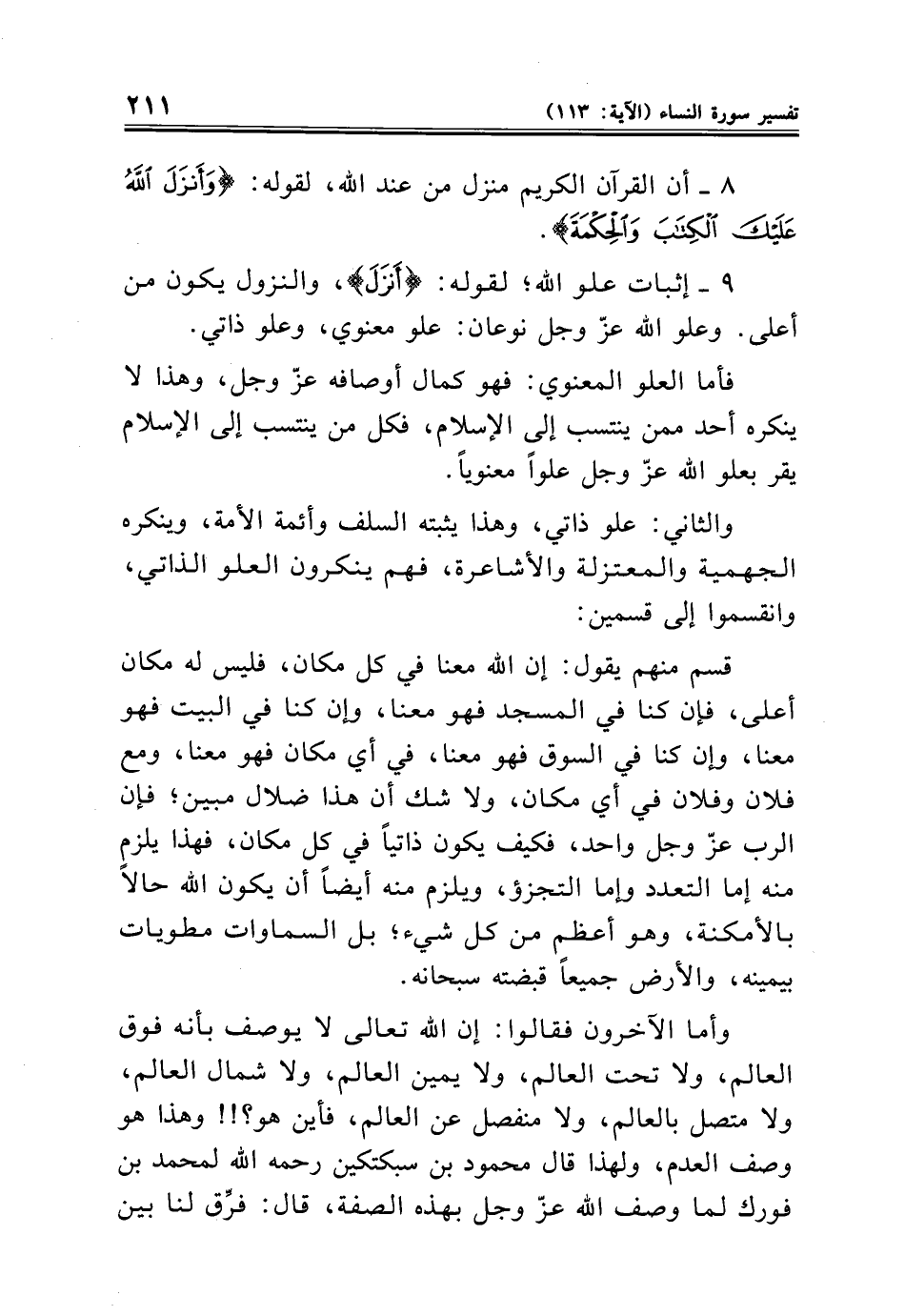 ٨ - أن القرآن الكريم منزل من عند الله، لقوله: {وَأَنْزَلَ الله عَلَيْكَ الْكِتَابَ وَالْحِكْمَةَ}.