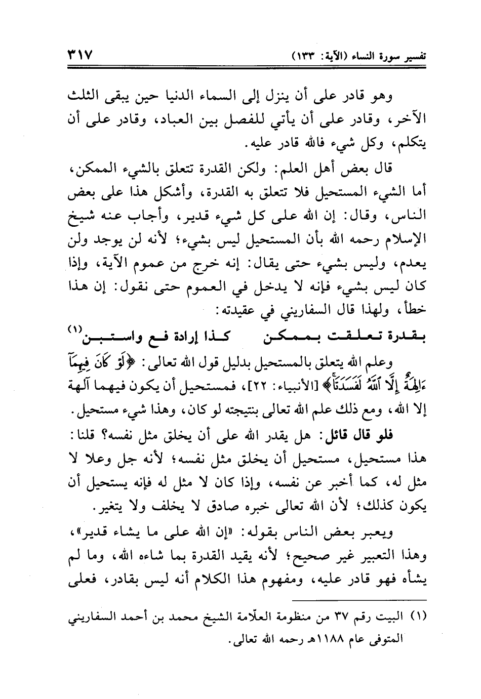 (¬١) البيت رقم ٣٧ من منظومة العلّامة الشيخ محمد بن أحمد السفاريني المتوفى عام ١١٨٨ هـ رحمه الله تعالى.