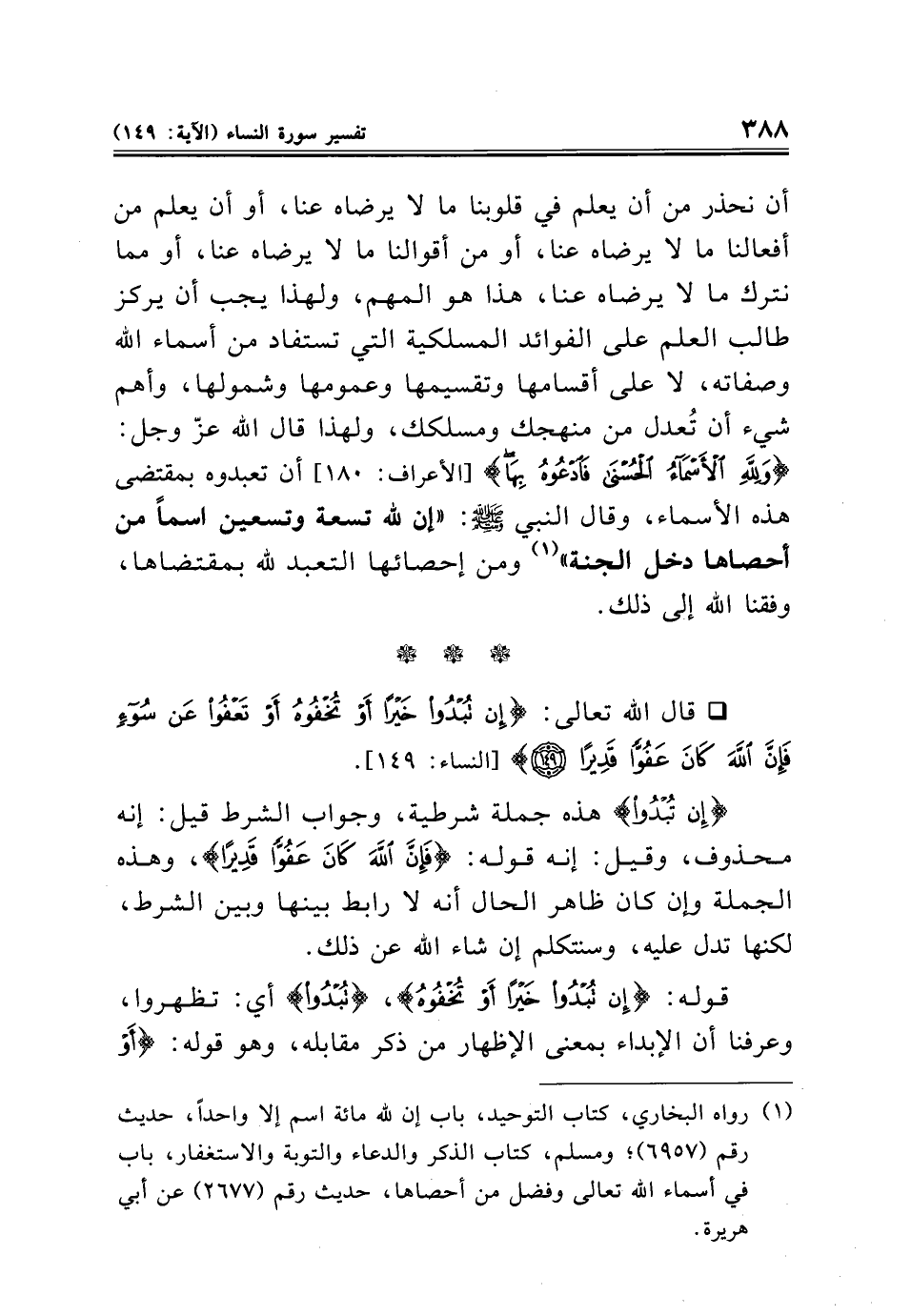 * قال الله تعالى: {إِنْ تُبْدُوا خَيْرًا أَوْ تُخْفُوهُ أَوْ تَعْفُوا عَنْ سُوءٍ فَإِنَّ اللَّهَ كَانَ عَفُوًّا قَدِيرًا (١٤٩)} [النساء: ١٤٩].