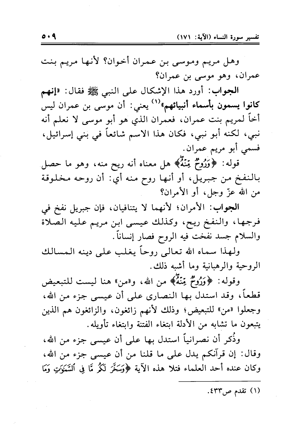 قوله: {وَرُوحٌ مِنْهُ} هل معناه أنه ريح منه، وهو ما حصل بالنفخ من جبريل، أو أنها روح منه أي: أن روحه مخلوقة من الله عزّ وجل، أو الأمران؟