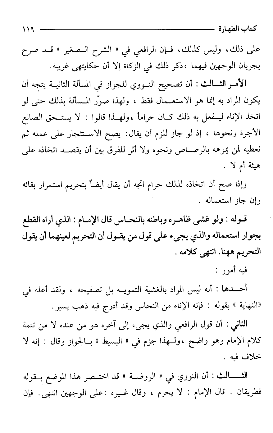 الأمر الثالث: أن تصحيح النووي للجواز في المسألة الثانية يتجه أن يكون المراد به إنما هو الاستعمال فقط، ولهذا صوّر المسألة بذلك حتى لو اتخذ الإناء ليفعل به ذلك كان حرامًا، ولهذا قالوا: لا يستحق الصانع الأجرة ونحوها، إذ لو جاز للزم أن يقال: يصح الاستئجار على عمله ثم نعطيه لمن يموهه بالرصاص ونحوه ولا أثر للفرق بين أن يقصد اتخاذه على هيئة أم لا.