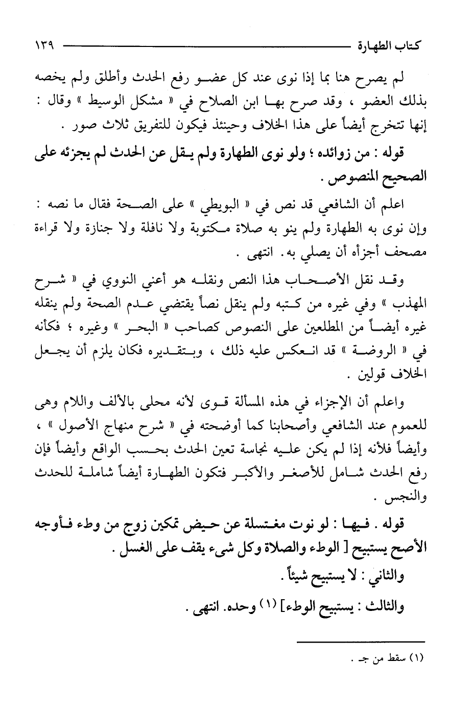 واعلم أن الإجزاء في هذه المسألة قوي لأنه محلى بالألف واللام وهى للعموم عند الشافعي وأصحابنا كما أوضحته في "شرح منهاج الأصول"، وأيضًا فلأنه إذا لم يكن عليه نجاسة تعين الحدث بحسب الواقع وأيضًا فإن رفع الحدث شامل للأصغر والأكبر فتكون الطهارة أيضًا شاملة للحدث والنجس.