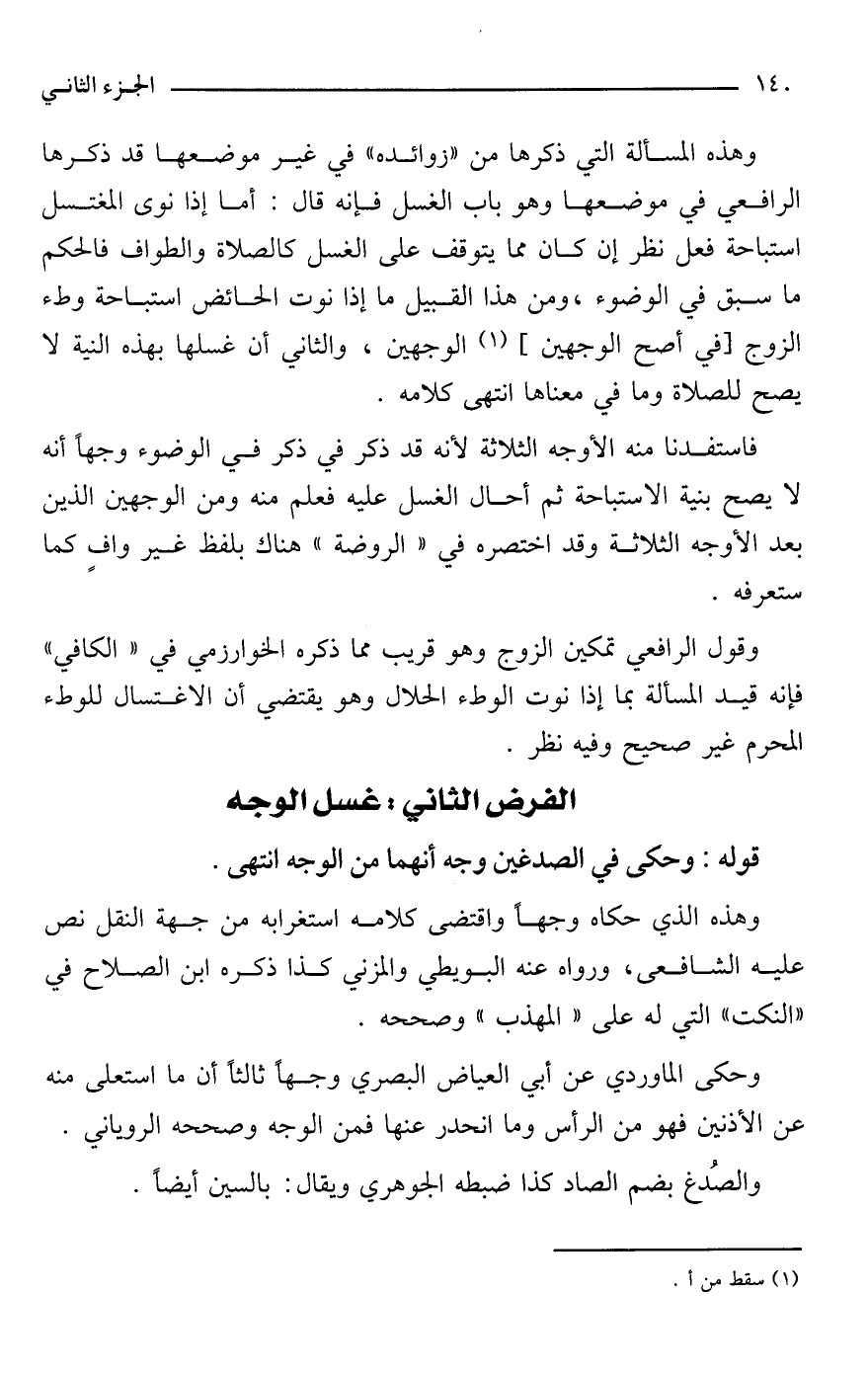 وهذا الذي حكاه وجهًا واقتضى كلامه استغرابه من جهة النقل نص عليه الشافعى، ورواه عنه البويطي والمزني كذا ذكره ابن الصلاح في "النكت" التي له على "المهذب" وصححه.