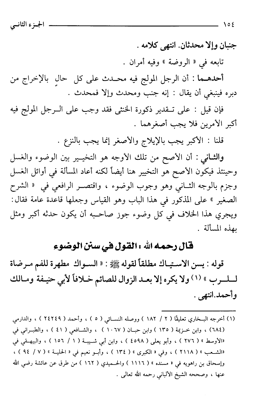 (¬1) أخرجه البخاري تعليقًا (2/ 182) ووصله النسائي (5)، وأحمد (24249)، والدارمي (684)، وابن خزيمة (135) وابن حبان (1067)، والشافعي (41)، والطبراني في "الأوسط" (276)، وأبو يعلى (4598)، وابن أبي شيبة (1/ 156)، والبيهقي في "الشعب" (2118)، وفي "الكبرى" (134)، وأبو نعيم في "الحلية" (7/ 94)، وإسحاق بن راهويه في "مسنده" (1116) والحميدي (162) من طرق عن عائشة -رضي الله عنها-، وصححه الشيخ الألباني -رحمه الله تعالى-.