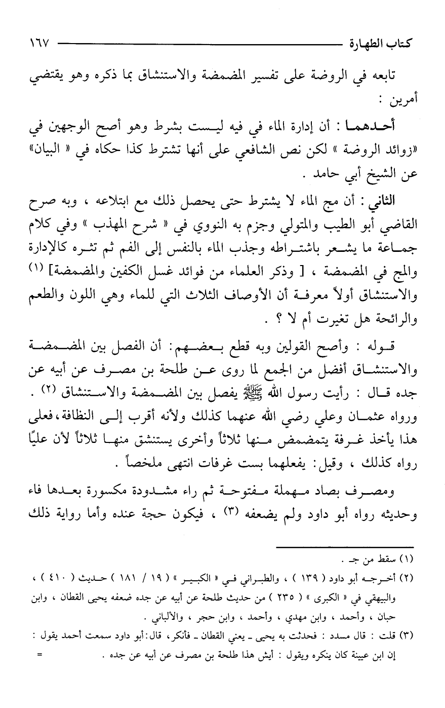 ومصرف بصاد مهملة مفتوحة ثم راء مشدودة مكسورة بعدها فاء وحديثه رواه أبو داود ولم يضعفه (¬3)، فيكون حجة عنده وأما رواية ذلك
