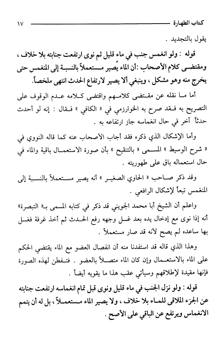 وقد ذكر صاحب "الحاوي الصغير" أنه يصير مستعملًا بالنسبة إلى المنغمس تبعًا لإشكال الرافعي.