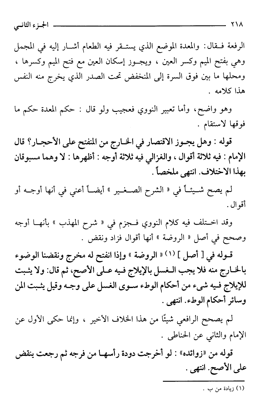 قوله: وهل يجوز الاقتصار في الخارج من المنفتح على الأحجار؟ قال الإمام: فيه ثلاثة أقوال، والغزالي فيه ثلاثة أوجه: أظهرها: لا وهما مسبوقان بهذا الاختلاف. انتهى ملخصًا.