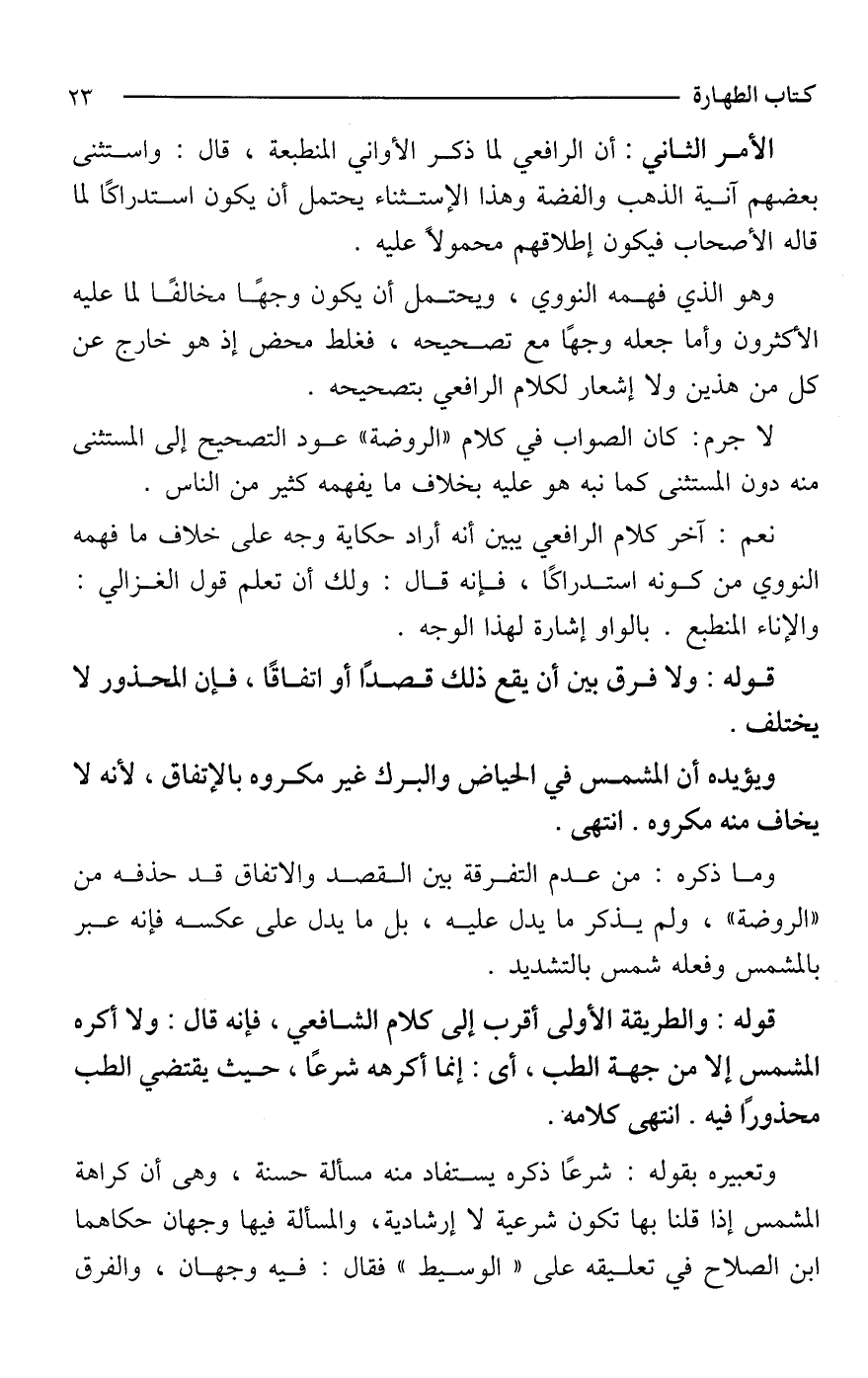 الأمر الثاني: أن الرافعي لما ذكر الأواني المنطبعة، قال: واستثنى بعضهم آنية الذهب والفضة وهذا الإستثناء يحتمل أن يكون استدراكًا لما قاله الأصحاب فيكون إطلاقهم محمولًا عليه.