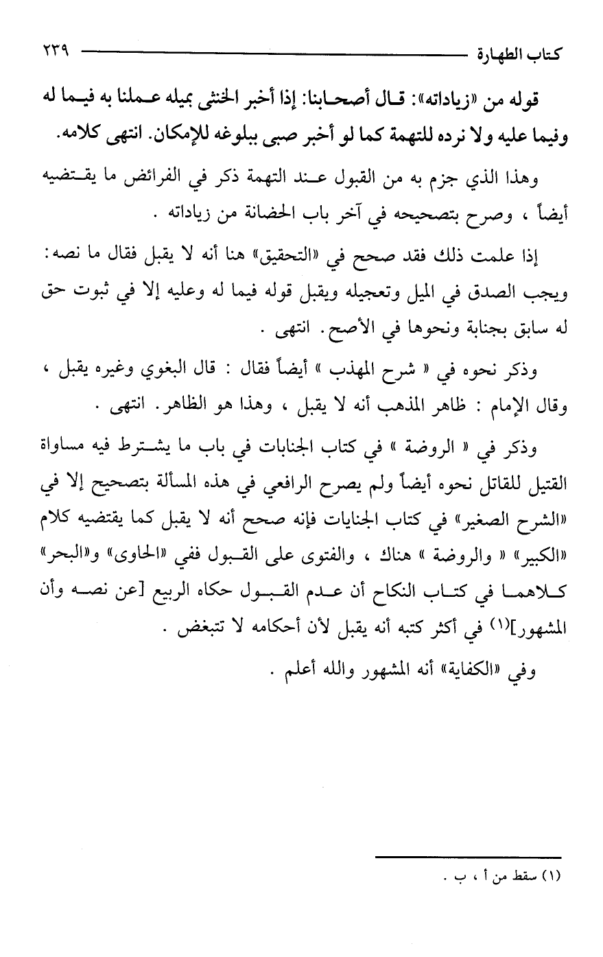 قوله من "زياداته": قال أصحابنا: إذا أخبر الخنثى بميله عملنا به فيما له وفيما عليه ولا نرده للتهمة كلما لو أخبر صبى ببلوغه للإمكان. انتهى كلامه.