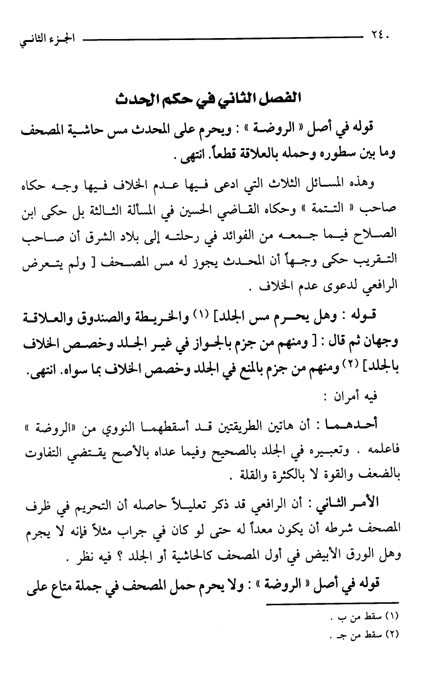 الفصل الثاني: في حكم الحدث