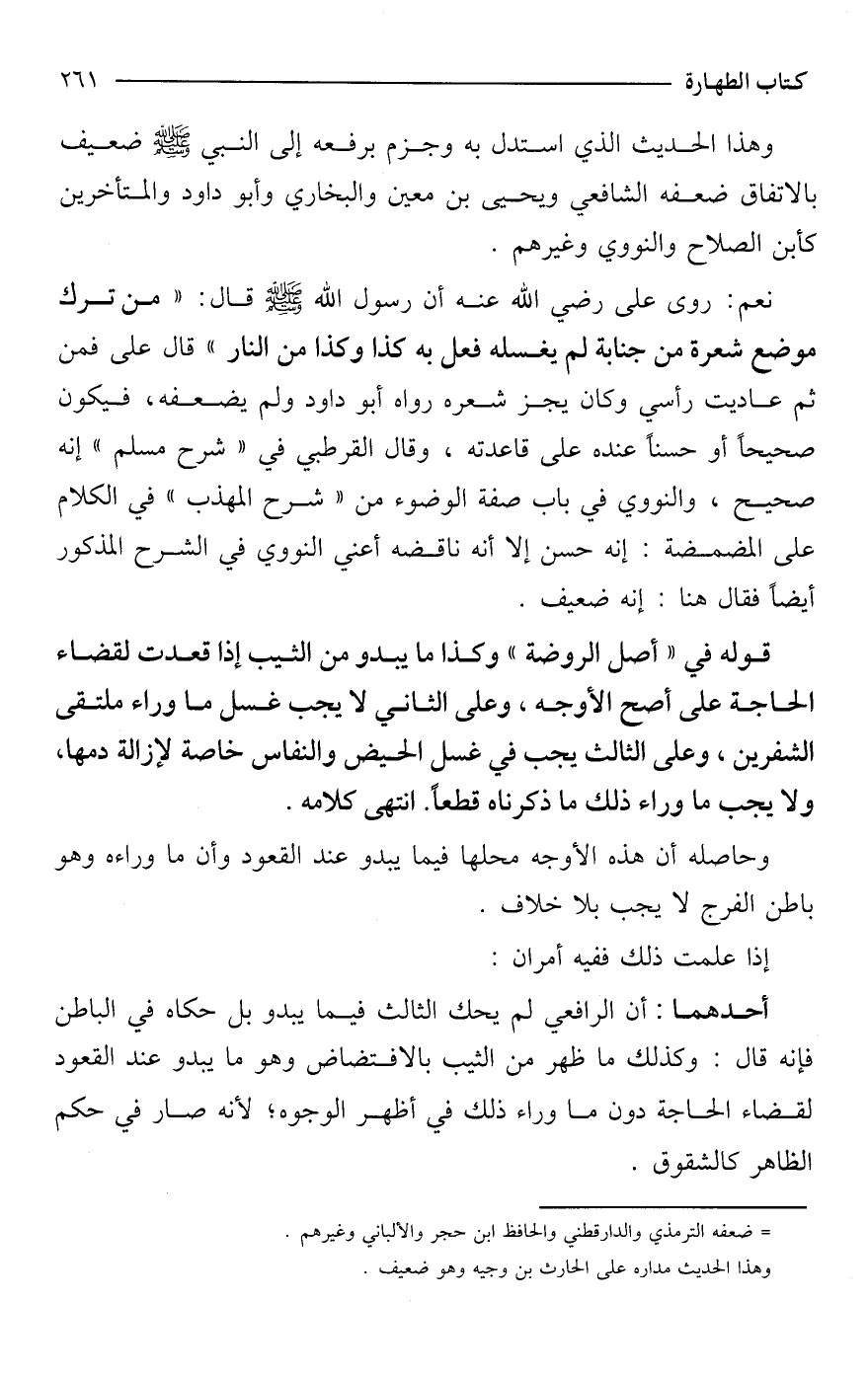 وهذا الحديث الذي استدل به وجزم برفعه إلى النبي - صَلَّى اللَّهُ عَلَيْهِ وَسَلَّمَ - ضعيف بالاتفاق ضعفه الشافعي ويحيى بن معين والبخاري وأبو داود والمتأخرين كابن الصلاح والنووي وغيرهم.