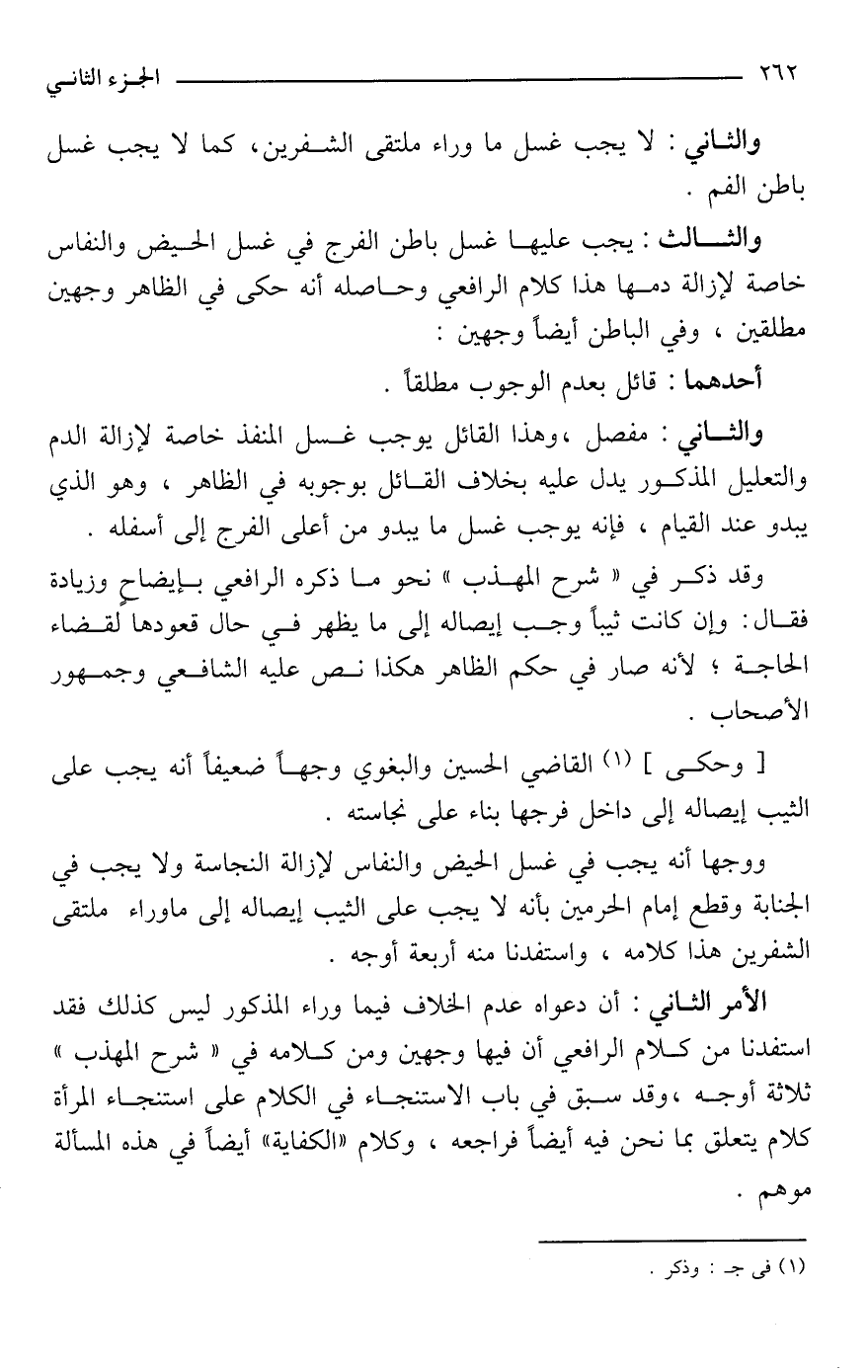 الأمر الثاني: أن دعواه عدم الخلاف فيما وراء المذكور ليس كذلك فقد استفدنا من كلام الرافعي أن فيها وجهين ومن كلامه في "شرح المهذب" ثلاثة أوجه، وقد سبق في باب الاستنجاء في الكلام على استنجاء المرأة كلام يتعلق بما نحن فيه أيضًا فراجعه، وكلام "الكفاية" أيضًا في هذه المسألة موهم.