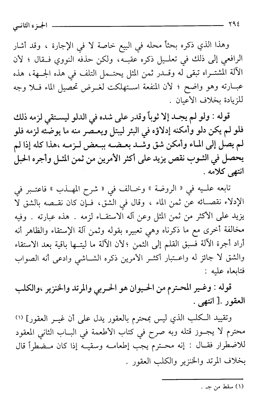 وهذا الذي ذكره بحثًا محله في البيع خاصة لا في الإجارة، وقد أشار الرافعي إلى ذلك في تعليل ذكره عقبه، ولكن حذفه النووي فقال؛ لأن الآلة المشتراه تبقى له وقدر ثمن المثل يحتمل التلف في هذه الجهة، هذه عبارته وهو واضح؛ لأن المنفعة استهلكت لغرض تحصيل الماء فلا وجه للزيادة بخلاف الأعيان.