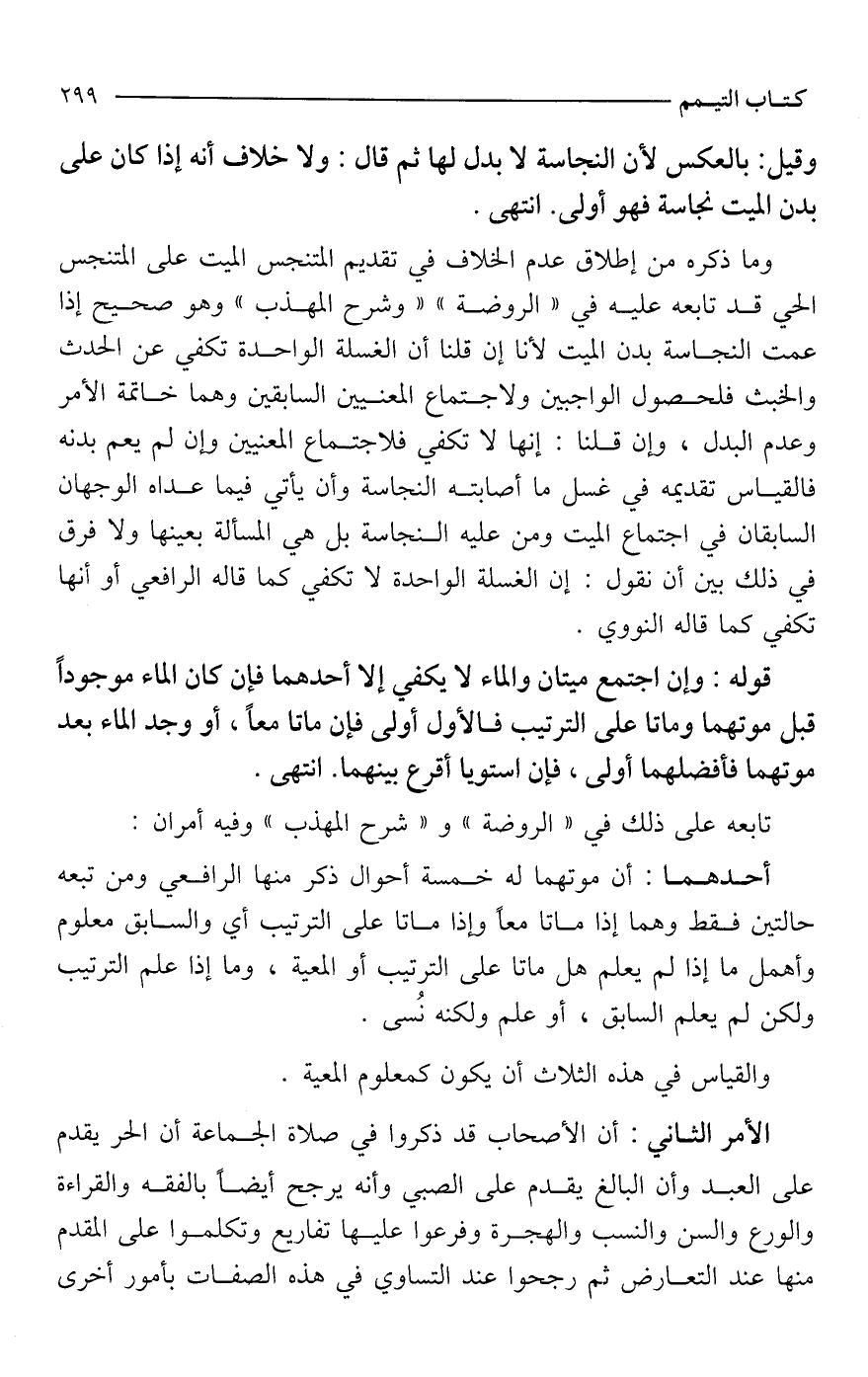 قوله: وإن اجتمع ميتان والماء لا يكفي إلا أحدهما فإن كان الماء موجودًا قبل موتهما وماتا على الترتيب فالأول أولى فإن ماتا معًا، أو وجد الماء بعد موتهما فأفضلهما أولى، فإن استويا أقرع بينهما. انتهى.