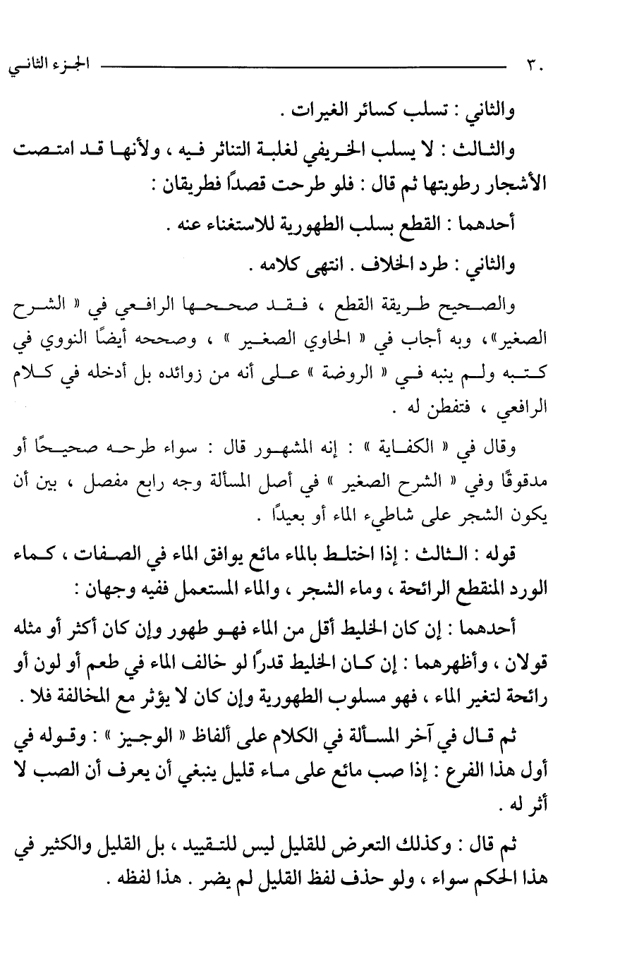 قوله: الثالث: إذا اختلط بالماء مائع يوافق الماء في الصفات، كماء الورد المنقطع الرائحة، وماء الشجر، والماء المستعمل ففيه وجهان: