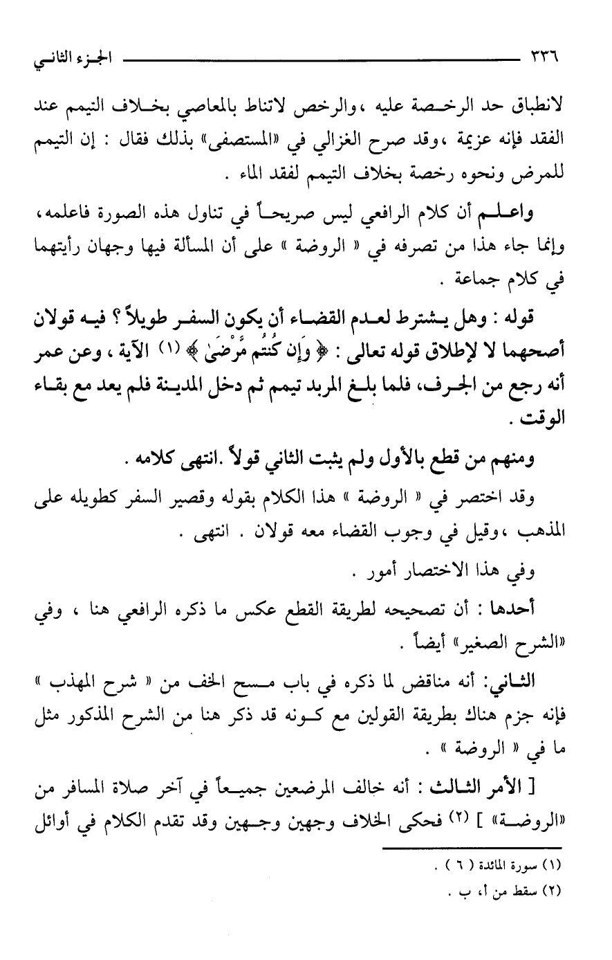 الثاني: أنه مناقض لما ذكره في باب مسح الخف من "شرح المهذب" فإنه جزم هناك بطريقة القولين مع كونه قد ذكر هنا من الشرح المذكور مثل ما في "الروضة".