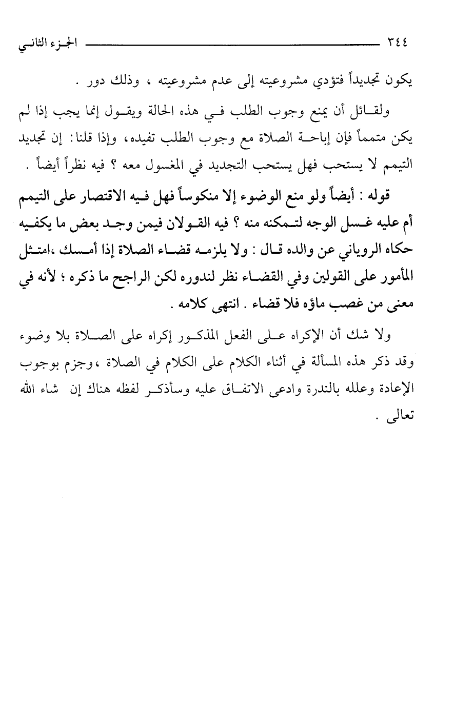 ولقائل أن يمنع وجوب الطلب في هذه الحالة ويقول إنما يجب إذا لم يكن متممًا فإن إباحة الصلاة مع وجوب الطلب تفيده، وإذا قلنا: إن تجديد التيمم لا يستحب فهل يستحب التجديد في المغسول معه؟ فيه نظر أيضًا.
