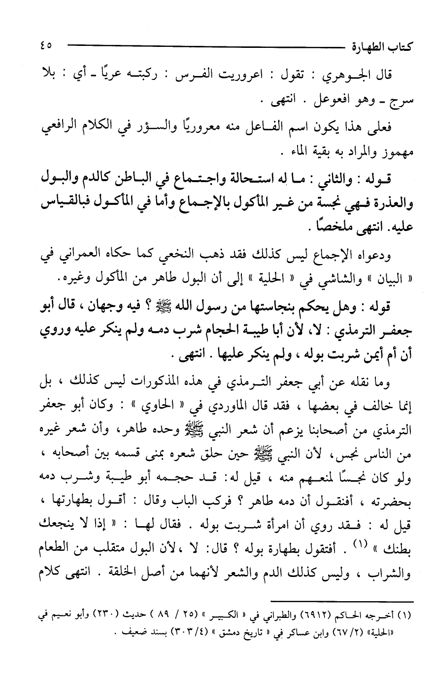 ودعواه الإجماع ليس كذلك فقد ذهب النخعي كما حكاه العمراني في "البيان" والشاشي في "الحلية" إلى أن البول طاهر من المأكول وغيره.