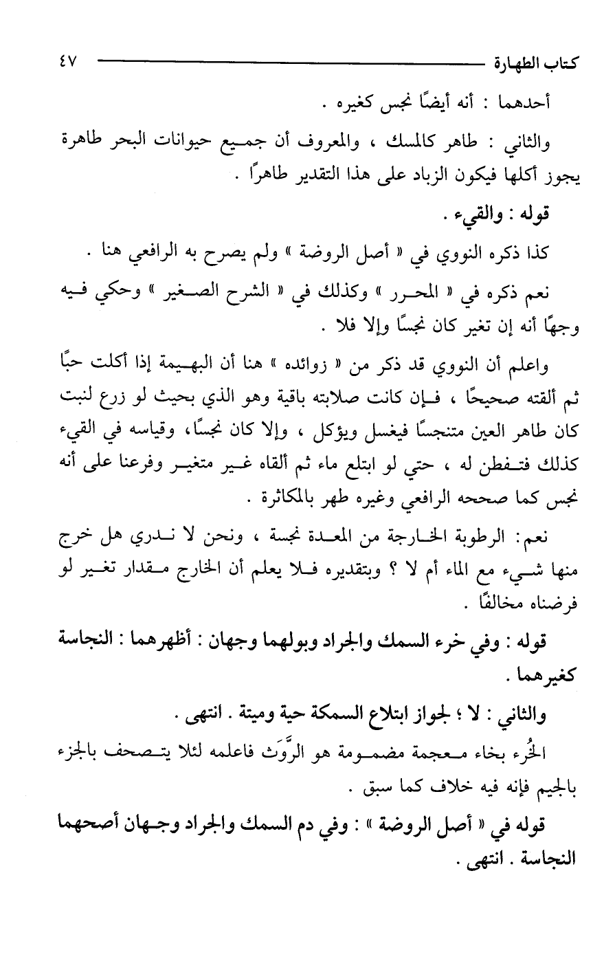 قوله في "أصل الروضة": وفي دم السمك والجراد وجهان أصحهما النجاسة. انتهى.