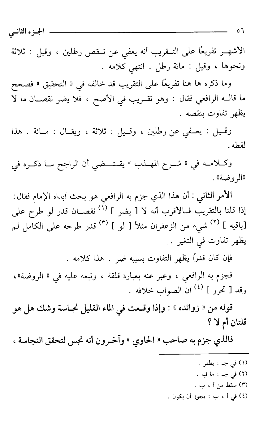 الأشهر تفريعًا على التقريب أنه يعفي عن نقص رطلين، وقيل: ثلاثة ونحوها، وقيل: مائة رطل. انتهي كلامه.