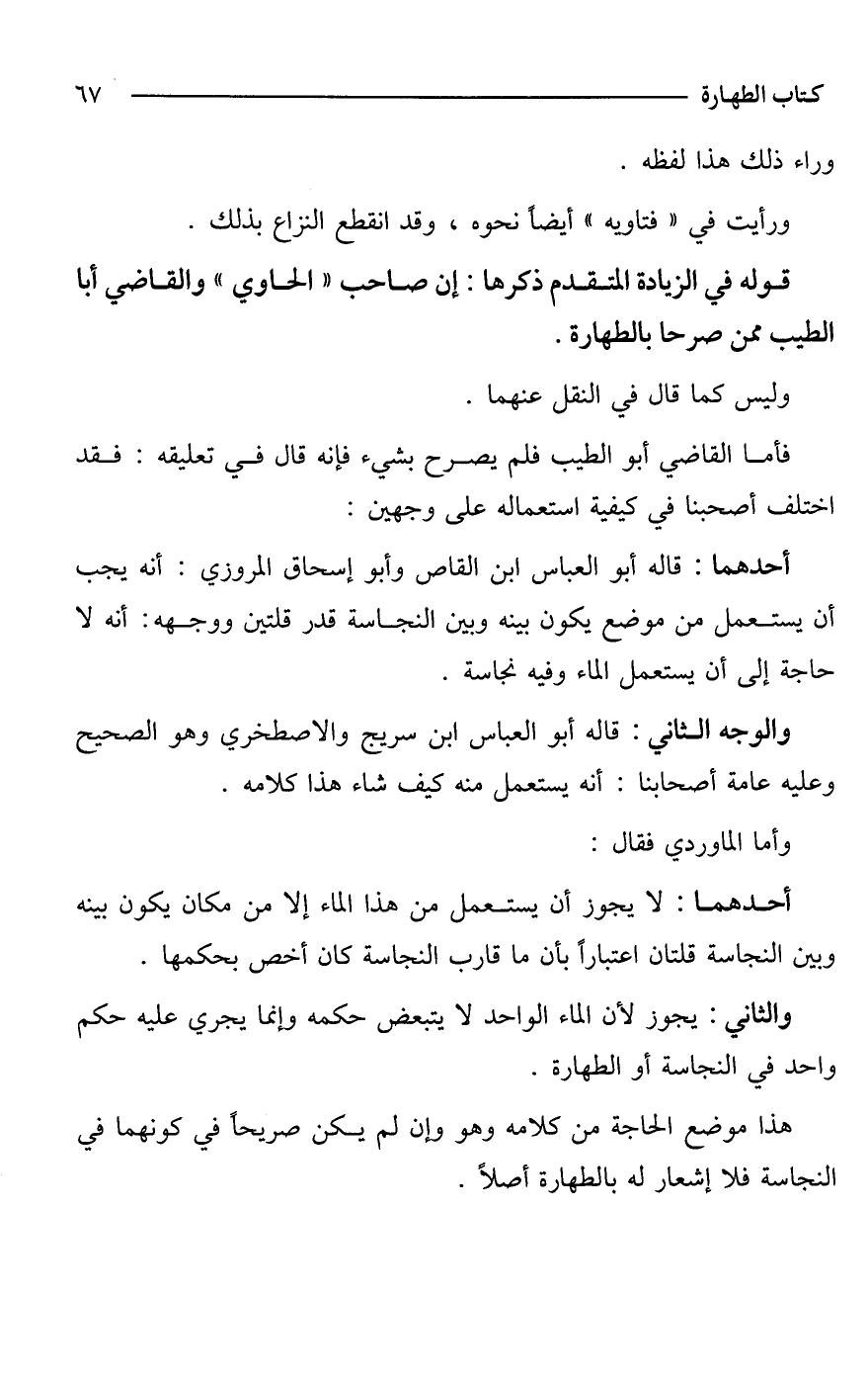 فأما القاضي أبو الطيب فلم يصرح بشيء فإنه قال في تعليقه: فقد اختلف أصحبنا في كيفية استعماله على وجهين: