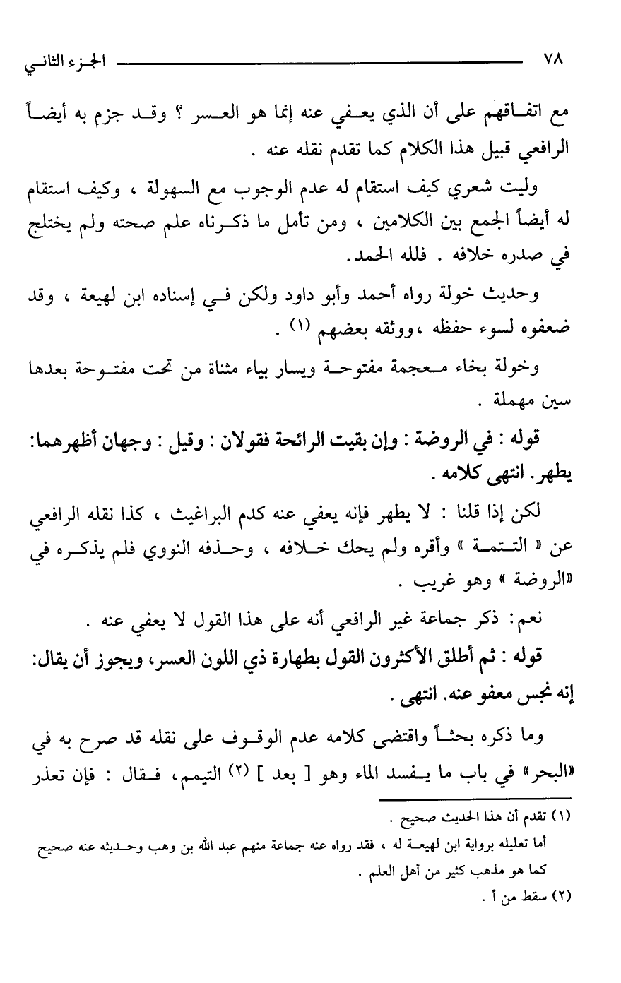 قوله: ثم أطلق الأكثرون القول بطهارة ذي اللون العسر، ويجوز أن يقال: إنه نجس معفو عنه. انتهى.