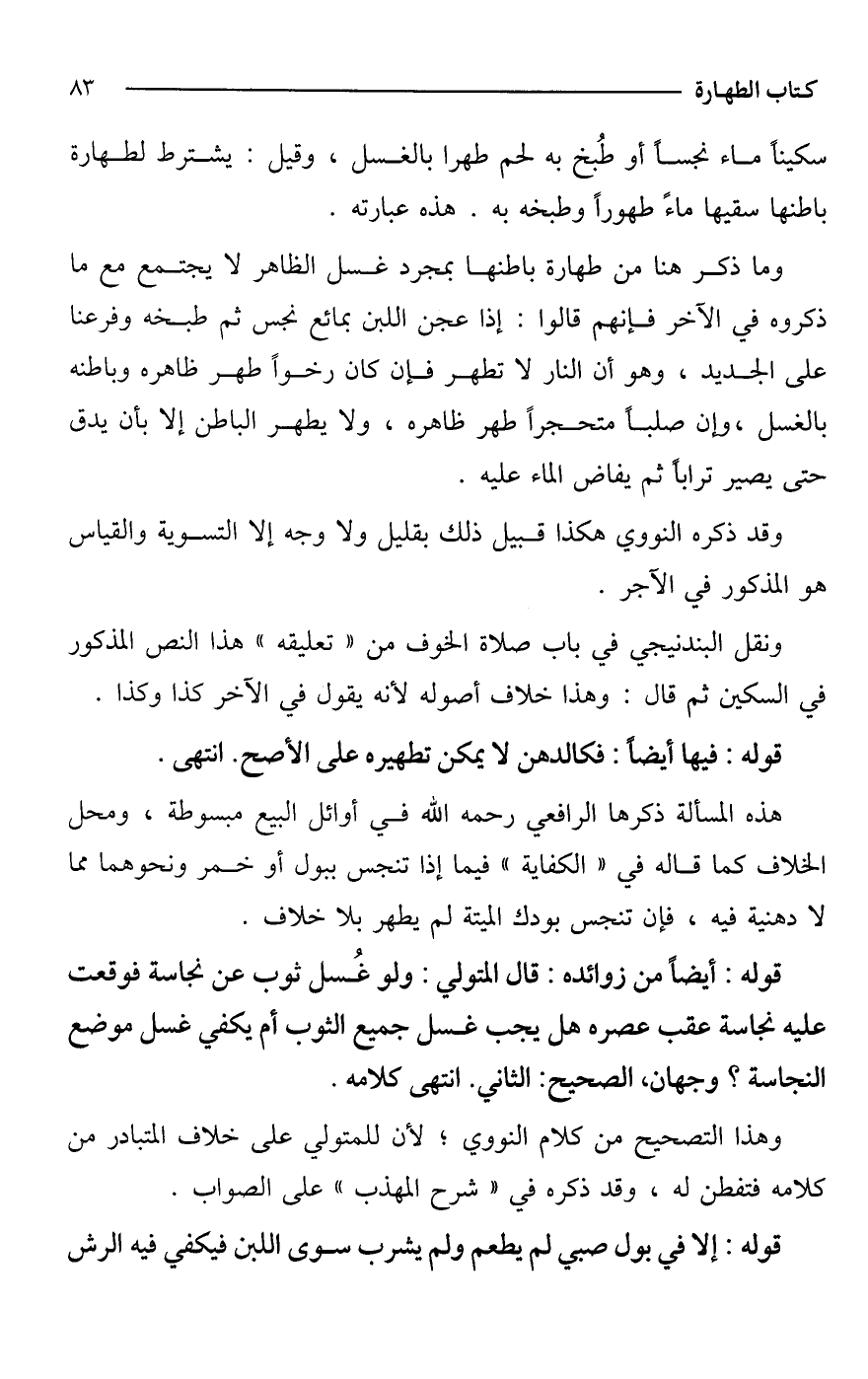 قوله: فيها أيضًا: فكالدهن لا يمكن تطهيره على الأصح. انتهى.