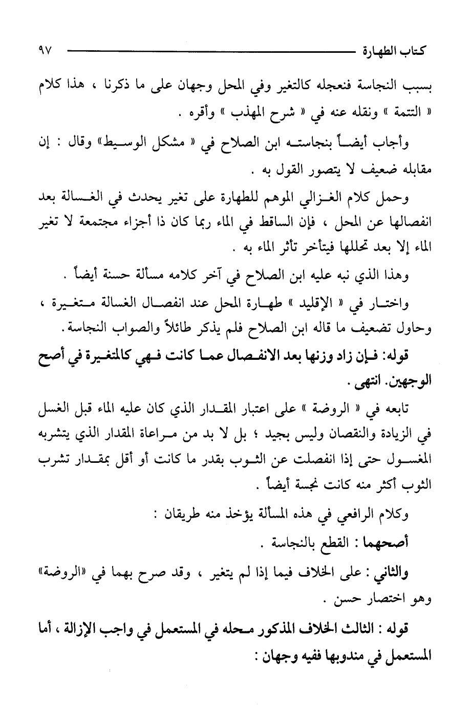 وأجاب أيضًا بنجاسته ابن الصلاح في "مشكل الوسيط" وقال: إن مقابله ضعيف لا يتصور القول به.