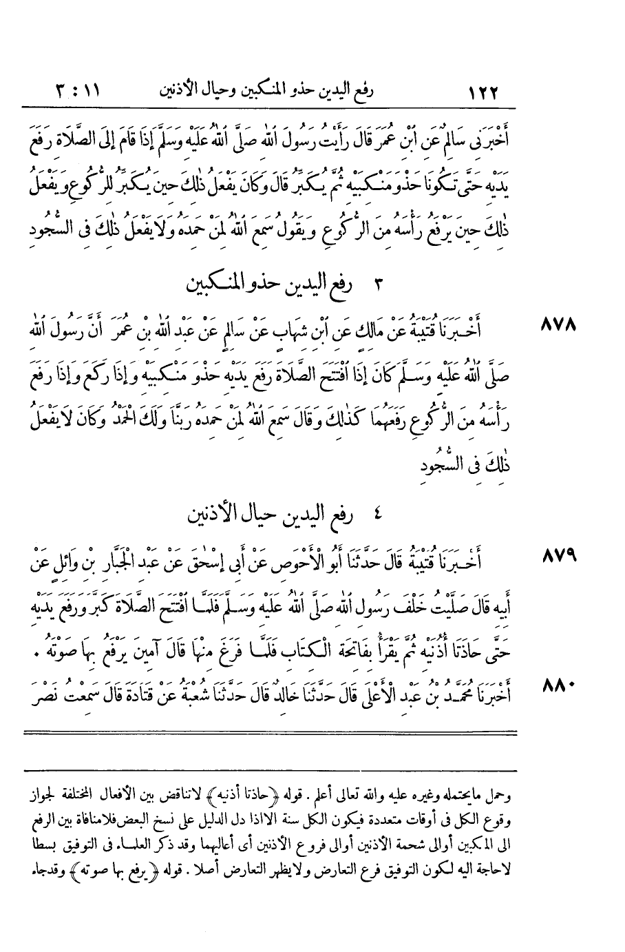 وَحمل مَا يحْتَملهُ وَغَيره عَلَيْهِ وَالله تَعَالَى أعلم قَوْله حاذتا أُذُنَيْهِ لَا تنَاقض بَين الْأَفْعَال الْمُخْتَلفَة لجَوَاز وُقُوع الْكل فِي أَوْقَات مُتعَدِّدَة فَيكون الْكل سنة الا إِذا دلّ الدَّلِيل على نسخ الْبَعْض فَلَا مُنَافَاة بَين الرّفْع إِلَى المكبين أَو إِلَى شحمة الْأُذُنَيْنِ أَو إِلَى فروع الْأُذُنَيْنِ أَي أعاليهما وَقد ذكر الْعلمَاء فِي التَّوْفِيق بسطا لَا حَاجَة إِلَيْهِ لكَون التَّوْفِيق فرع التَّعَارُض وَلَا يظْهر التَّعَارُض أصلا قَوْله يرفع بهَا صَوته وَقد جَاءَ