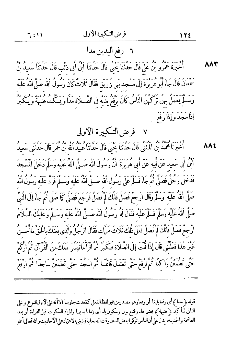 قَوْله مدا أَي رفعا بليغا أَو رفعا وَهُوَ مصدر من غير لفظ الْفِعْل كقعدت جُلُوسًا الا أَنه على الأول للنوع وعَلى الثَّانِي للتَّأْكِيد هنيهة بِضَم هَاء وَفتح نون وَسُكُون يَاء أَي زَمَانا يَسِيرا وَالْمرَاد السُّكُوت قبل الْقِرَاءَة أَو بعد الْفَاتِحَة والْحَدِيث يدل على أَن النَّاس تركُوا بعض السّنَن وَقت الصَّحَابَة فَيَنْبَغِي الِاعْتِمَاد على الْأَحَادِيث وَالله تَعَالَى أعلم