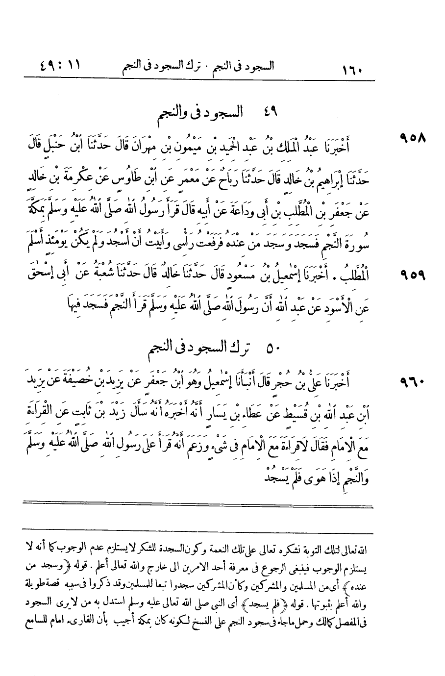 [958] وَسجد من عِنْده أَي من الْمُسلمين وَالْمُشْرِكين وَكَأن الْمُشْركين سجدوا تبعا للْمُسلمين وَقد ذكرُوا فِي سَببه قصَّة طَوِيلَة وَالله أعلم بثبوتها