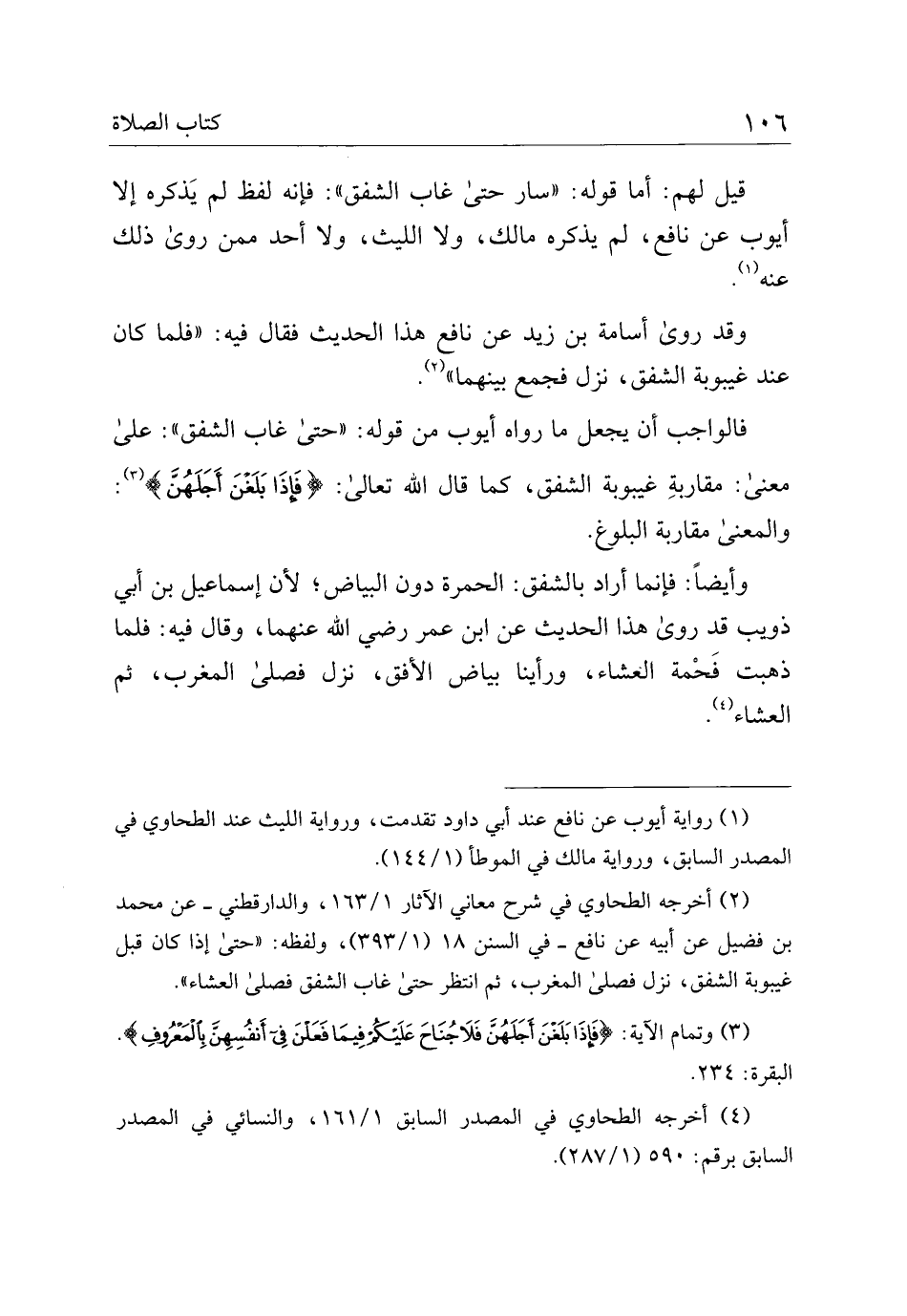 قيل لهم: أما قوله: "سار حتى غاب الشفق": فإنه لفظ لم يذكره إلا أيوب عن نافع، لم يذكره مالكن ولا الليث، ولا أحد ممن روي ذلك عنه.
