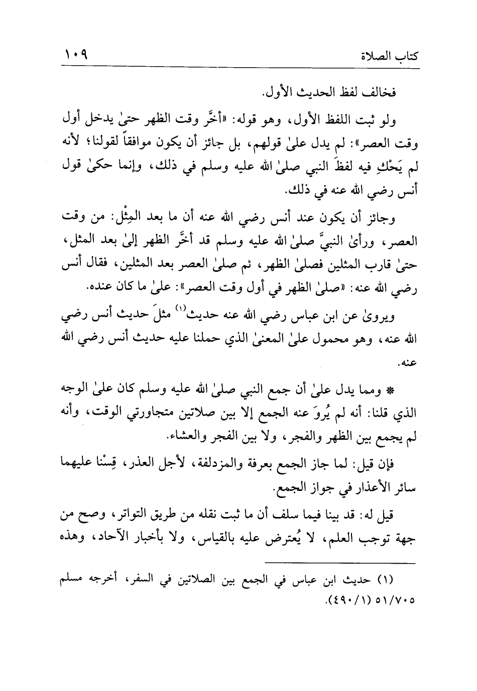 * ومما يدل على ان جمع النبي صلى الله عليه وسلم كان على الوجه الذي قلنا: أنه لم يرو عنه الجمع إلا بين صلاتين متجاورتي الوقت، وأنه لم يجمع بين الظهر والفجر، ولا بين الفجر والعشاء.