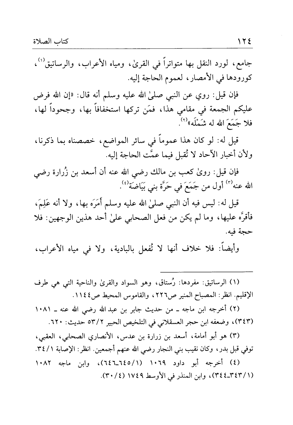 وأيضًا: فلا خلاف أنها لا تفعل البادية، ولا في مياه الأعراب،
